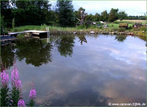 Im Sommer lockt unser hauseigener Badesee mit Wasserfall zum Erfrischen, für jung & alt, oder als Kneippbäder.