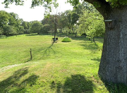 Auf mehreren großen Wiese inmitten von Obstbäumen gleich neben unserem kleinen Wäldchen und der Lagerfeuerstelle, dicht beim Badesee oder der Sauna befinden sich der Campingplatz.